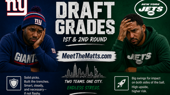 PITTSBURGH, PA – The first two rounds of the NFL Draft are where hope is sold, and the currency is —and for fans of the New York Giants and New York Jets, there’s cautious optimism… with receipts still pending.